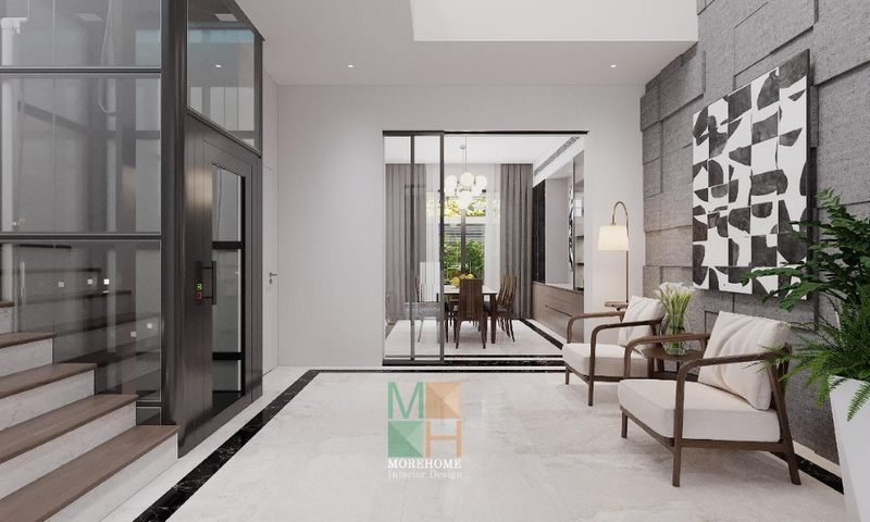 Đá lát sàn và ốp tường thang máy hiện đại, cao cấp dùng cho không gian của nhà phố thêm sang trọng, ấn tượng.