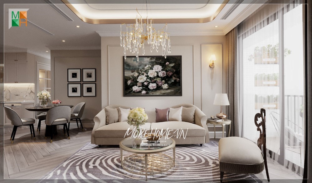 Nội thất phòng khách hiện đại được thiết kế tối giản với những đường nét chi tiết được giảm đi để tập trung vào công năng sử dụng, tạo nên một không gian tiếp khách trẻ trung, năng động và sang trọng.