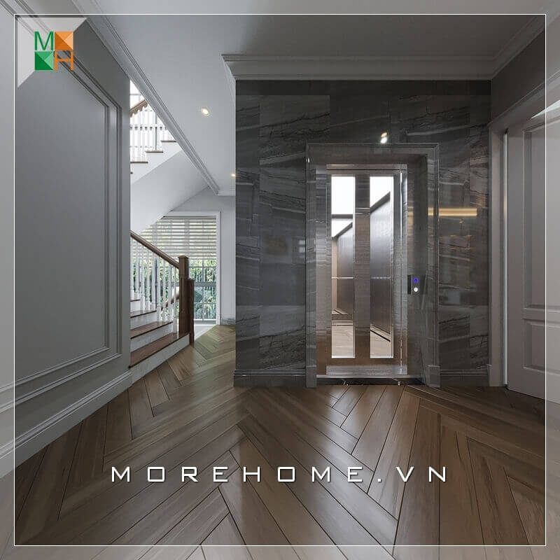 Biệt thự được thiết kế với nhiều tầng, hệ thống thang bộ và máy trong đó đảm bảo sự thoáng đãng, cùng với không gian đón nắng tự nhiên.